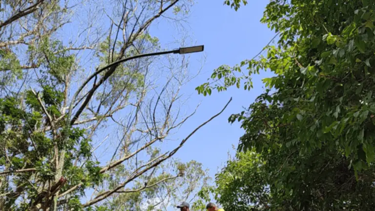 Entre los trabajos de iluminación está el cambio de lámparas de vapor de sodio por luz LED.