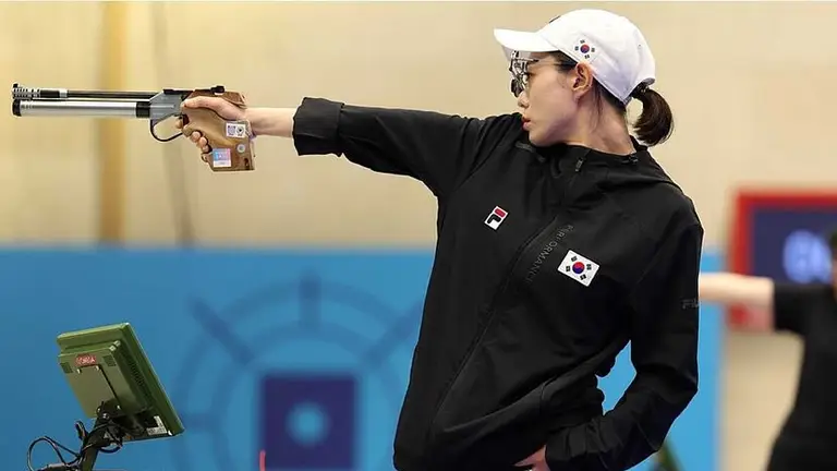 La surcoreana Kim Ye-ji, medallista de plata en la prueba de tiro con pistola de aire comprimido a 10 metros, llamó la atención de todos los seguidores por su particular look a la hora de competir.