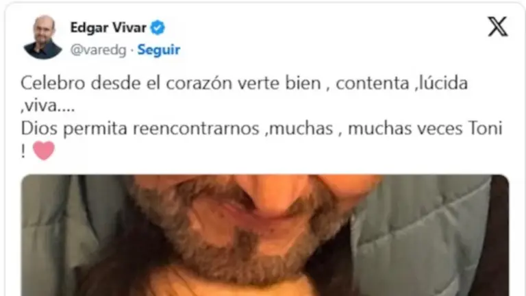 A través de sus redes sociales, Edgar Vivar publicó un sentido mensaje para María Antonieta de las Nieves, conocida por generaciones como 'La Chilindrina'. "Celebro desde el corazón verte bien, contenta, lúcida, viva… Dios permita reencontrarnos, muchas, muchas veces, Toni!", escribió el actor, quien acompañó sus palabras con una fotografía donde ambos aparecen en un cariñoso abrazo.