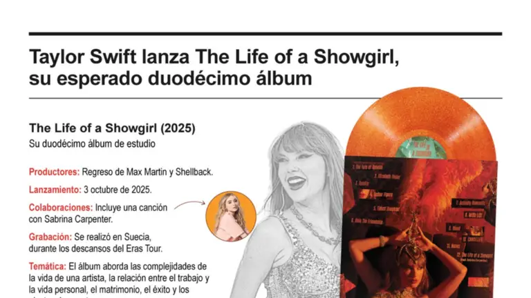 'The Life of a Showgirl' es una obra que marca un hito en la discografía de Swift: una Taylor feliz, deliberadamente pop, consciente de su rol como reina del espectáculo, y que recuerda a sus mayores éxitos, con una cuidada producción y la promesa de "grand finale" tras el Eras Tour.