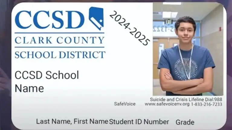 El Distrito Escolar del Condado Clark ha solicitado a los estudiantes de secundarias y preparatorias, usar una tarjeta de identificación en un cordón provisto por la escuela.