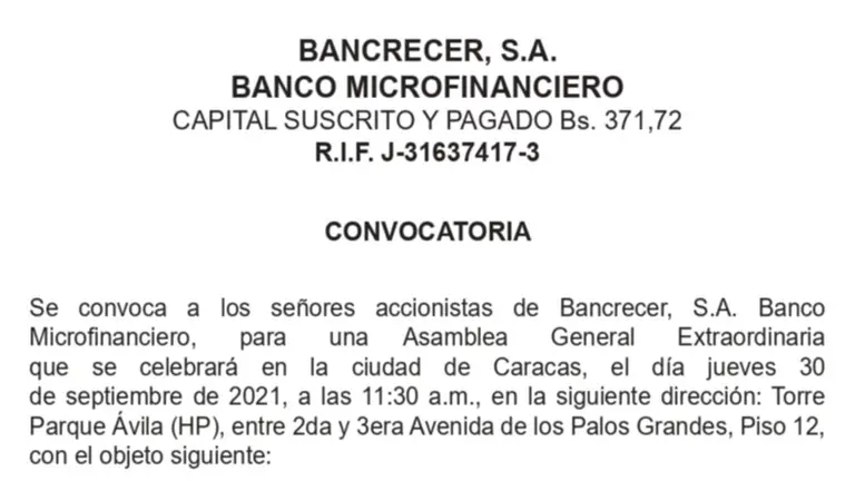 Convocatoria | Asamblea General Extraordinaria – Aumento Cap. Social Sep 2021