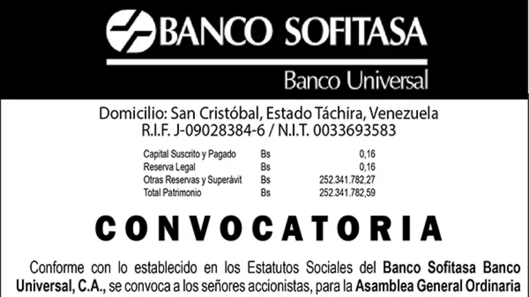 CONVOCATORIA | BANCO SOFITASA 24 FEB 2023