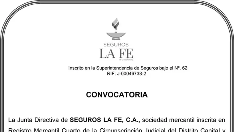 CONVOCATORIA EXTRAORDINARIA | SEGUROS LA FE 24 FEB 2022