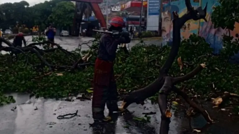 “Un Árbol Ornamental (Jabillo) desprendió dos de sus ramas, cayendo sobre un tendido eléctrico el mismo energizado en la vialidad pública, sin registrarse personas lesionadas ni fallecidas, Efectivos del C.B.C Realizaron las labores de tala, quedando el procedimiento a cargo de Corpoelec”, indicó.