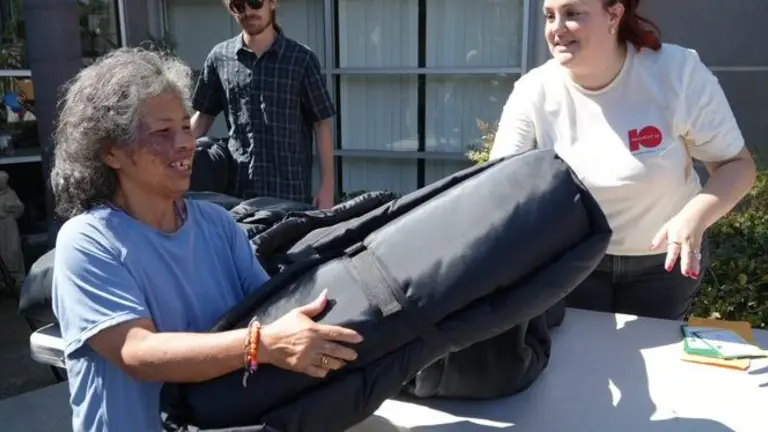 Los sacos para dormir entregados en California se transforman en prácticos bolsos